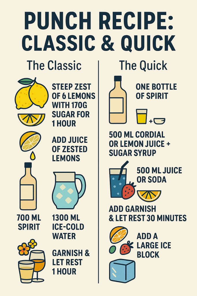 And now the classic situation: no time, everyone’s thirsty, and you need to throw together a punch ASAP: